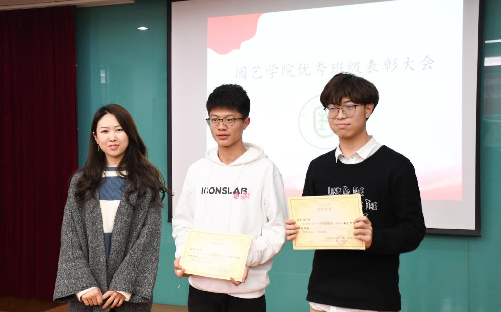 大会伊始,赵瑞宣读表彰决定,获表彰的优秀班级有:园艺182班、园艺184班、园艺171班、茶学171班、园艺163班、园艺162班、茶学151班。随后,赵瑞和褚阳阳为获奖班级颁奖。