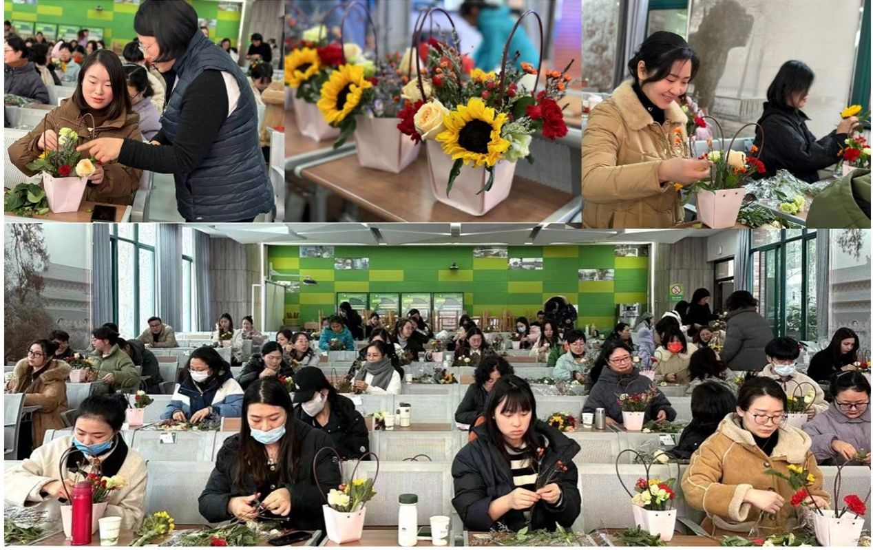 活动以插花艺术为载体开展,观赏茶学专业教师党支部赵爽副教授做了插花艺术与技巧的讲座,并现场指导实小老师们进行插花实践,我院参与活动的师生一同进行了协助。老师们理论联系实际,以巧思巧手,创作出了多种多样的花艺佳作,为春日增添了光彩,感受到了插花艺术的独特魅力,在实践中增强了美好生活由双手创造的感悟,提升了扮靓生活的技能和自信。