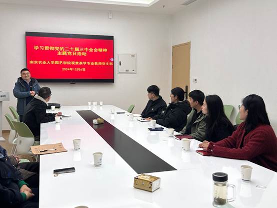 观赏茶学专业教师党支部在园艺楼134会议室开展了“学习贯彻党的二十届三中全会精神”主题党日活动,支部全体在校教师党员参加活动。
