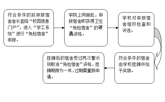 3、“免检宿舍”挂牌期限为一年,过期则需重新申请。