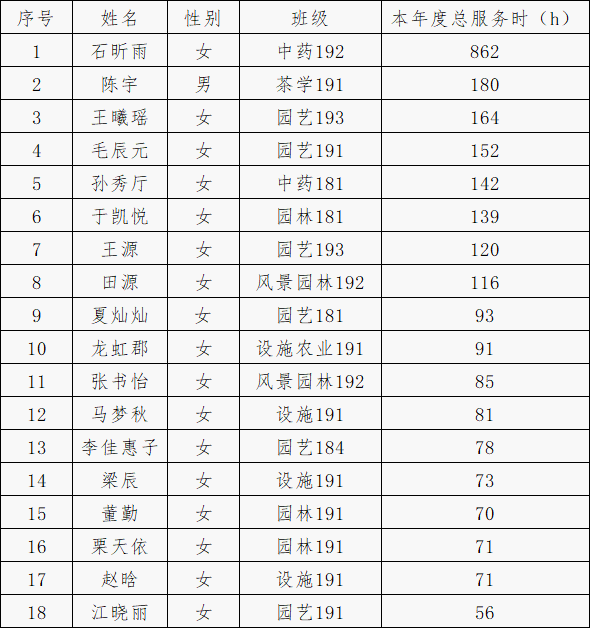 经个人申请,学院审核,以本年度志愿服务总时长为主要依据,拟推荐石昕雨等18名同学申请国产偷拍 优秀志愿者: