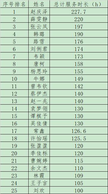 经个人申请,学院审核,以本年度志愿服务总时长为主要依据,拟推荐赵庆泽等25名同学申请国产偷拍 优秀志愿者: