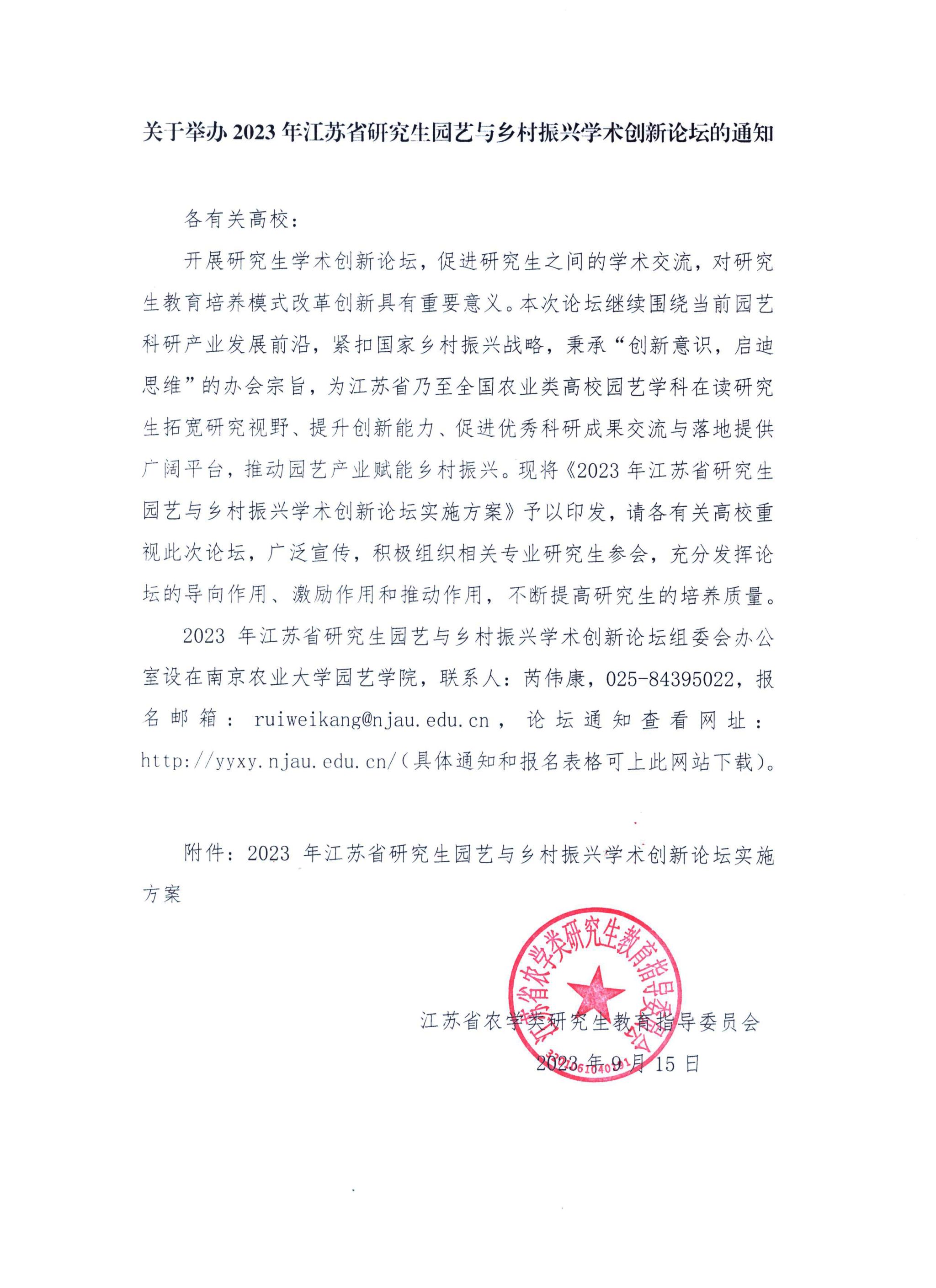 2023年江苏省研究生园艺与乡村振兴学术创新论坛由江苏省农学类研究生教育指导委员会主办,国产偷拍