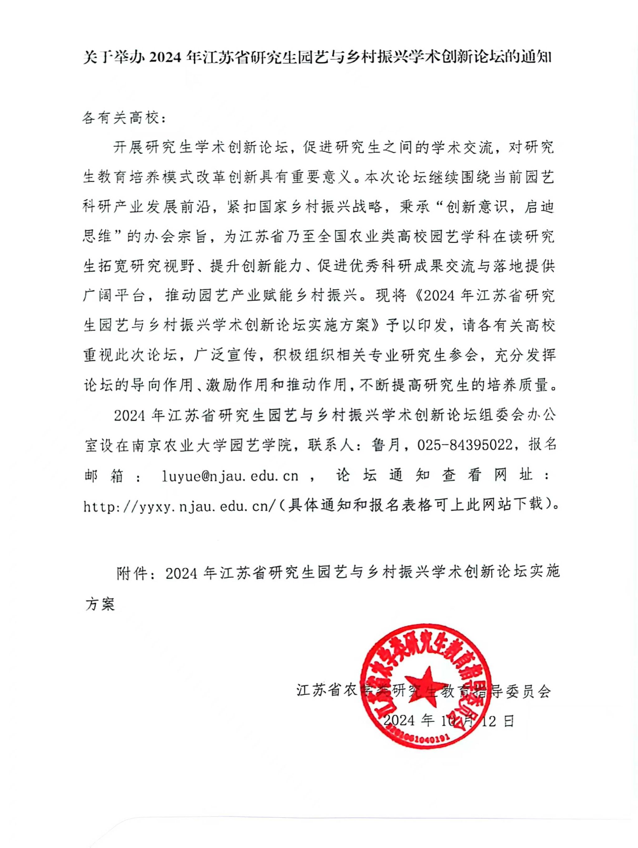 2024年江苏省研究生园艺与乡村振兴学术创新论坛由江苏省农学类研究生教育指导委员会主办,国产偷拍