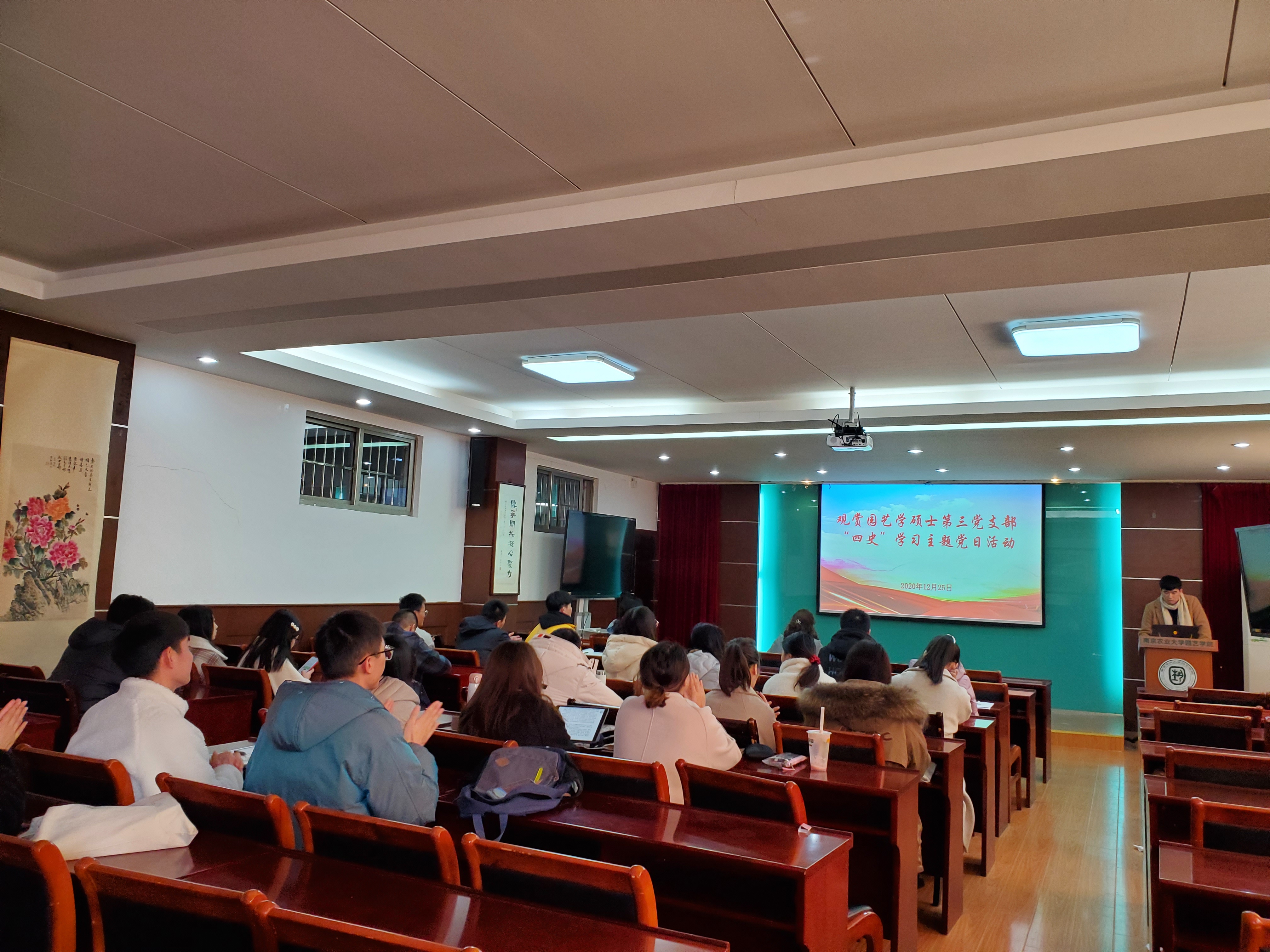 20201225日中午,观赏园艺硕士第三党支部于生科楼B4011教室成功举办四史学习主题党日活动。全体党员、预备党员、积极分子参加本次活动,部分积极分子分享自己的学习心得,活动由支部书记窦靓主持。