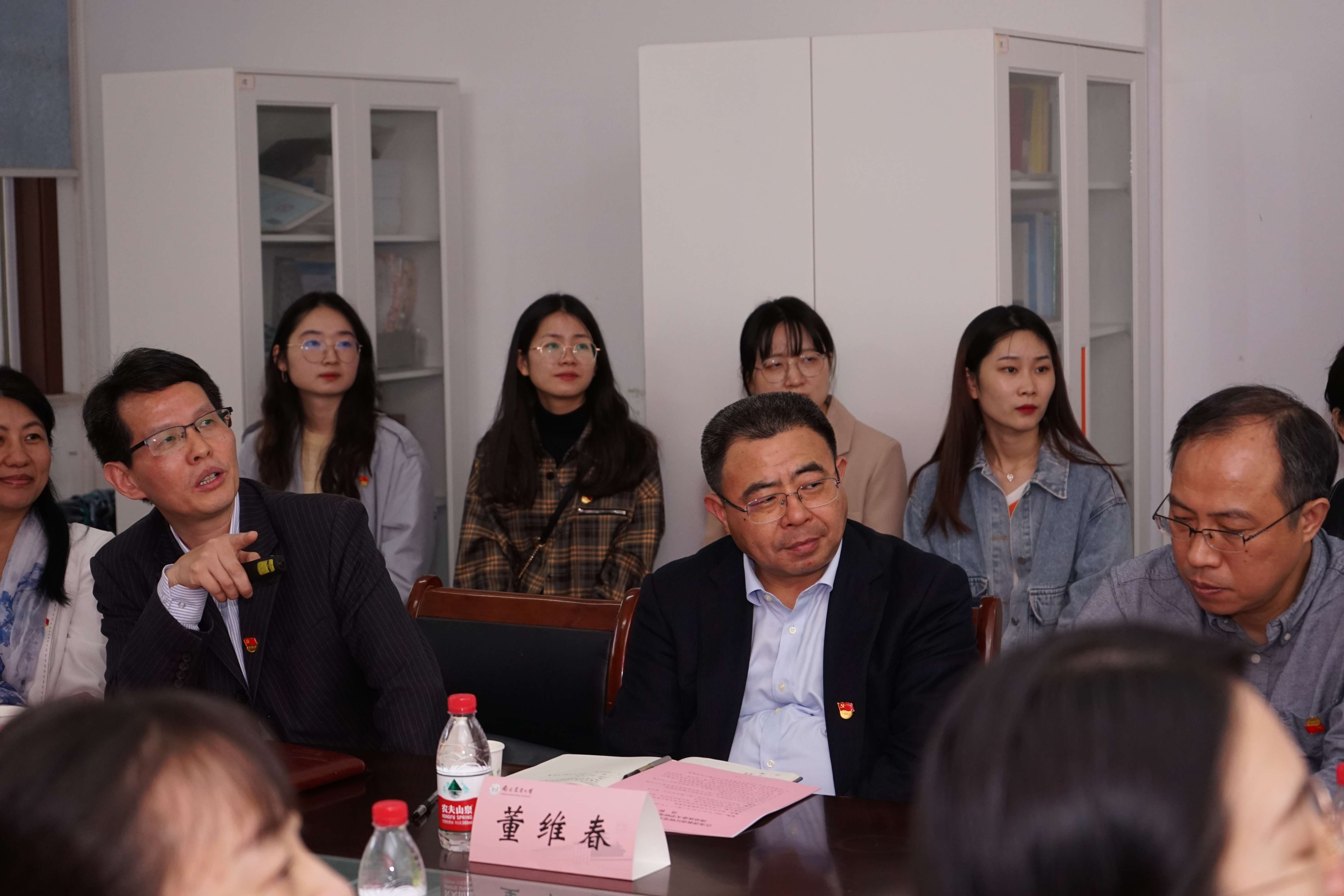 江苏省教育厅一级巡视员洪流,校党委常委、副校长董维春,省教育厅研究生处党支部书记李国荣及研究生处党支部党员、借调干部,校研究生院常副院长吴益东、研工部部长姚志友等党政领导及研究生院(部)党支部成员,国产偷拍
