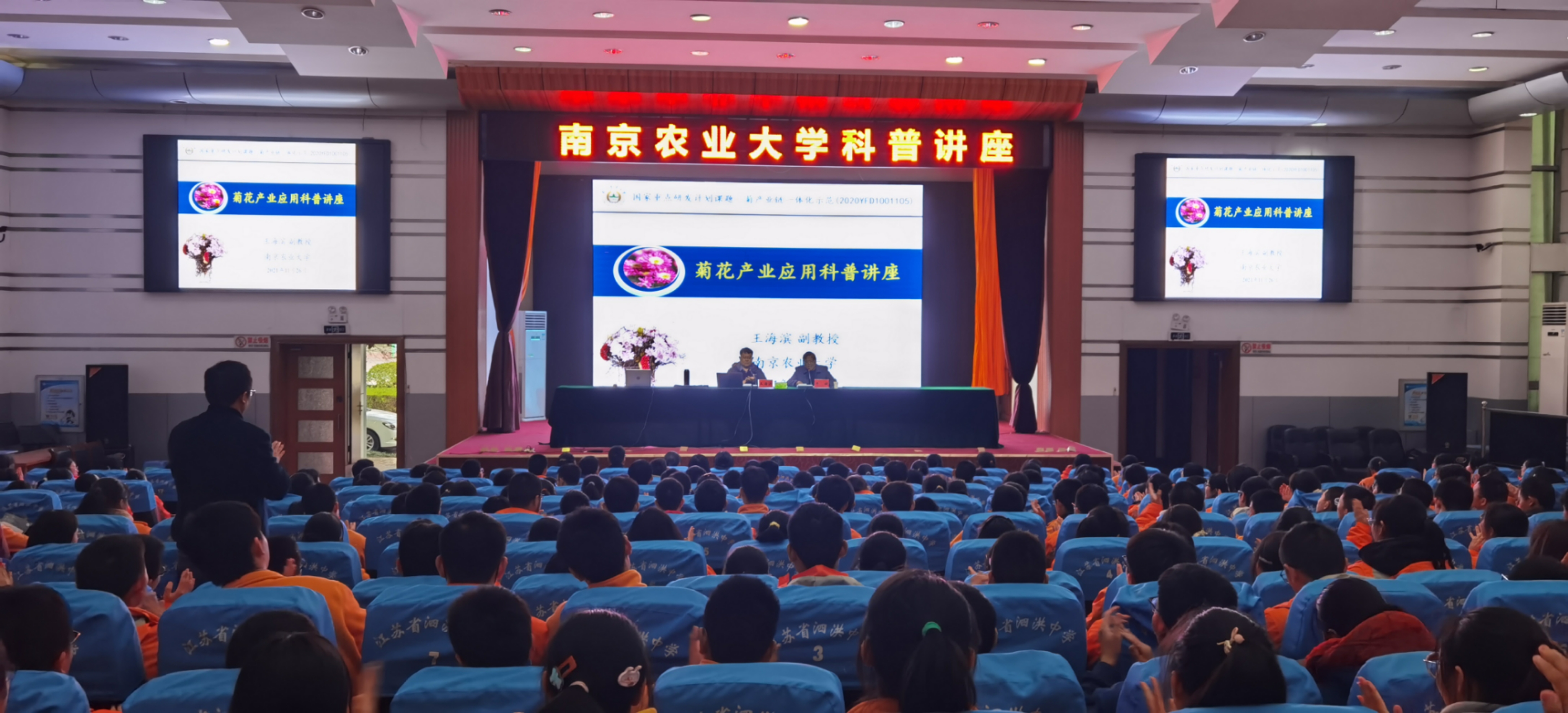 在泗洪中学,王海滨为700余名学生作了题为《菊花产业应用科普》的知识讲座。王老师从“采菊东篱下,悠然见南山”的菊花文化开始,讲述了菊花在花卉产业中的地位及观赏、药用、食用价值等,展示了各色菊花新品种,说到了国产偷拍