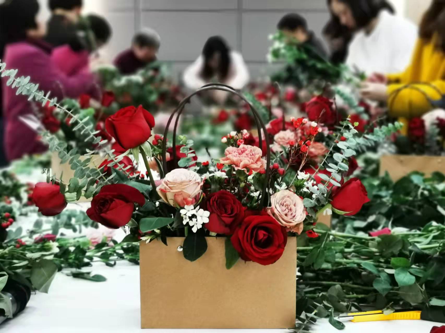 诗书经卷,墨香点点,是为书香。清幽芬芳,花香脉脉,是为花香。花香点缀书香,书香浸润花香。书香花香,相得益彰!在花艺师的指导下,各位师生修剪枝叶,整枝弯曲、固定造型。普通的花叶、枝条,经过精心修饰,变成了一束束令人赏心悦目的艺术品,活动现场一时间花香满溢,伴着图书馆淡淡书香,气氛愈显温馨,一朵朵鲜花在花篮中摇曳多姿,寄托着大家对园艺建系百年的美好祝愿,同时表达对百年建党伟业的祝福。