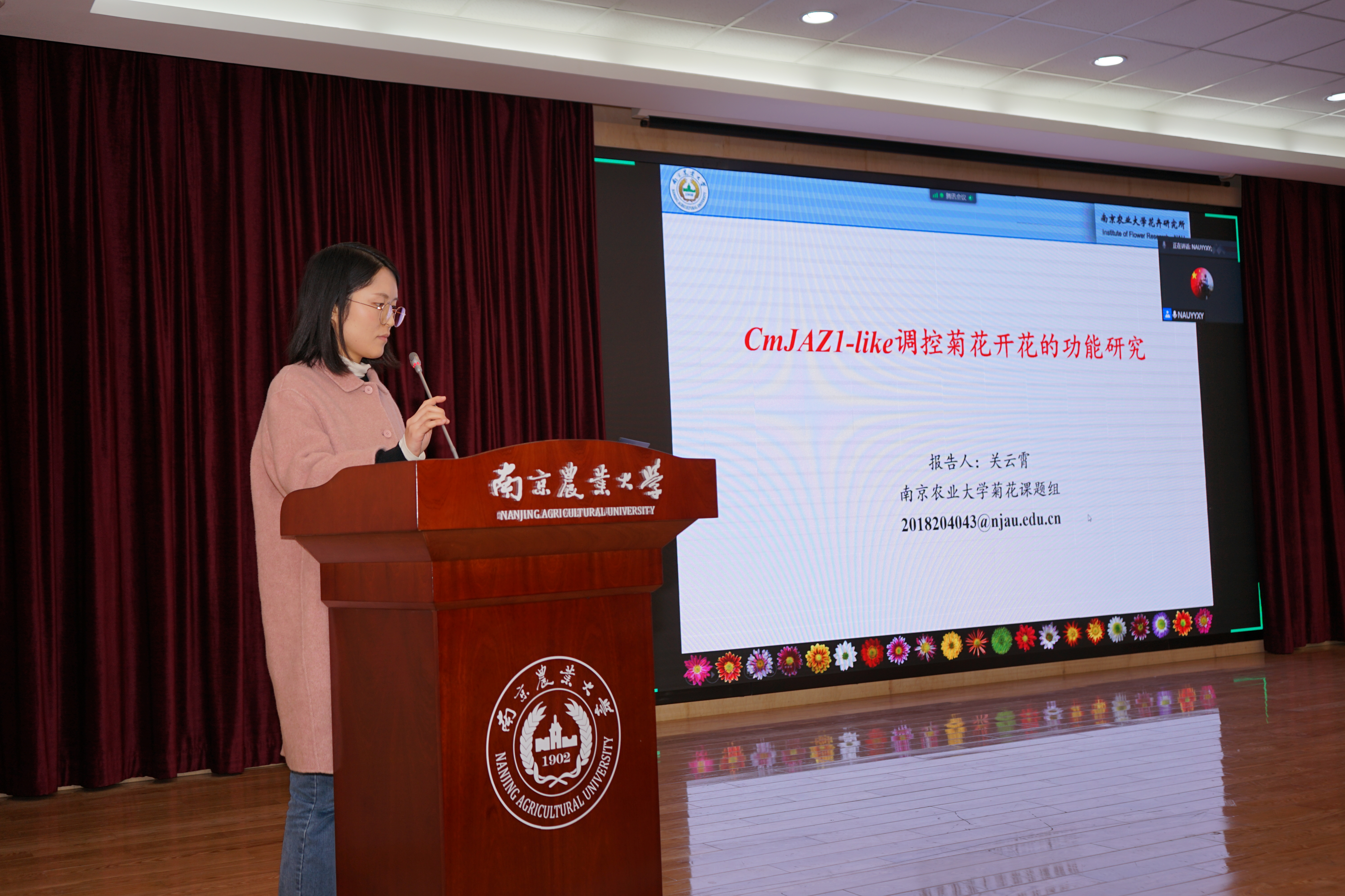 关云霄博士带来了题为《不亲和S-RNase介导DGK4调控液泡形态的分子机制》、《云南野生果树资源及果业发展调研》、《CmJAZ1-like调控菊花开花的功能研究》的精彩报告,为与会师生拓宽了研究思路。