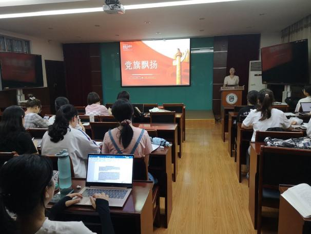 首先,支部书记赵瑞为全体党员进行了以“党旗飘扬建党100周年”为主题的微党课讲述。她以话剧《党旗飘扬》为切入点,向党员们讲述了我们党一百年的奋斗史以及高高飘扬的党旗的诞生史,通过党史给党员们以启示:我们生在新中国,长在春风里,目光所至皆为华夏,人民有信仰,国家有力量,民族有希望!欣逢盛世,当不负盛世,愿以吾辈之青春,捍卫盛世之中华!请永远相信,只要有党旗飘扬的地方就能汇聚中华民族的磅礴力量!