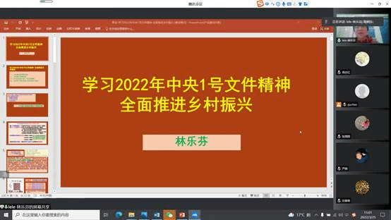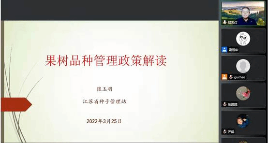 金融学院林乐芬教授和江苏省农业农村厅张玉明研究员分别以‘学习2022年中央1号文件精神 全面推进乡村振兴’和‘江苏省果树品种管理政策解读’为题开展线上理论学习。