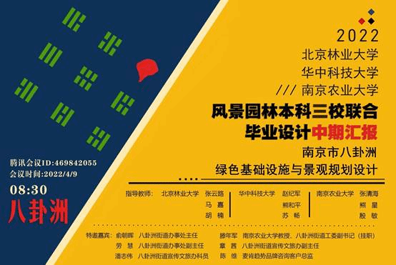 4月9日上午,由南京农业大学联合北京林业大学、华中科技大学共同参与的联合毕业设计“南京市八卦洲绿色基础设施与景观规划设计”中期汇报于线上顺利举行。来自三所院校的33位师生和南京八卦洲街道办事处主任余朝晖、街道工委副书记国产偷拍