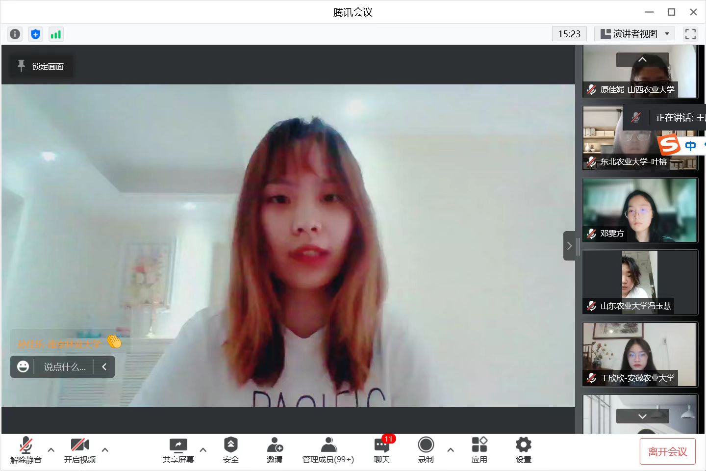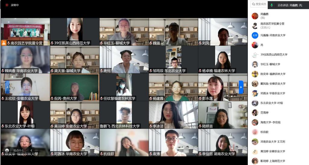 随后,优秀营员代表唐柯同学发言,她表示今年夏令营通过云携手,游南农,参观实验室、学科介绍、联谊会、科学家面对面等活动都让营员们受益匪浅。进一步明确了“世界眼光、中国情怀、南农品质”的追求,开拓了在蔬菜、果树、观赏园艺、茶学、设施、风景园林6个方向的视野,感受到了百廿南农雄厚的师资力量,深厚的文化底蕴。期待园艺人一起为满足国家食品有效供给,为实现园产品优质、绿色、高效生产,助推乡村振兴,建设美丽中国的研究目标而奋斗!