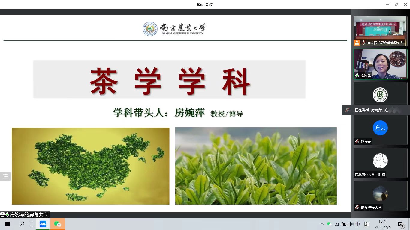 副院长、观赏园艺学科陈素梅教授、果树学科王晨教授、茶学学科房婉萍教授、设施园艺学科孙锦教授、风景园林学科丁绍刚教授。他们分别介绍了学科的师资、各位导师研究内容以及招生就业等情况,帮助学员们对各个学科有了更加深入的了解。