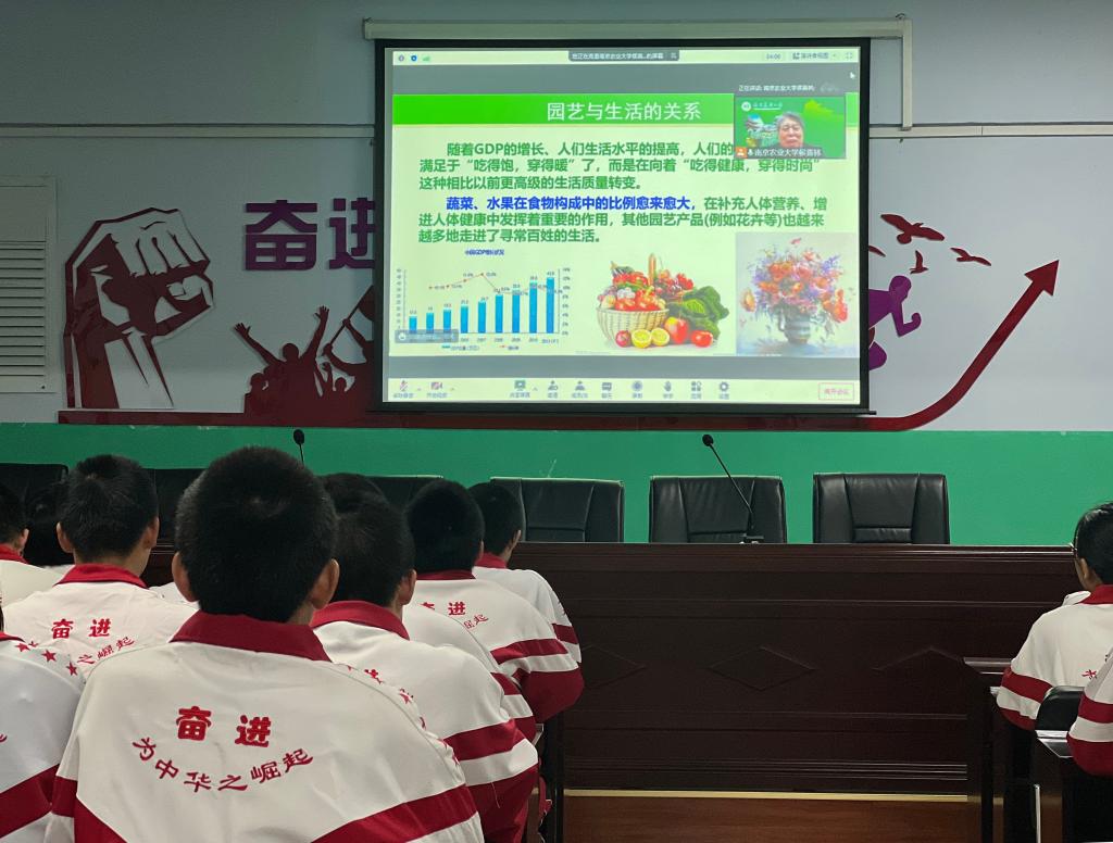 侯喜林教授以《园艺与生活》为题,从园艺植物的起源与演化、分类、形态特征、生长发育、营养成分及营养价值、在生活环境中的作用六个方面介绍了园艺植物与人类生活的密切关系。结合高中生的生物基础,他讲解了园艺植物的植物学分类与园艺学分类的相关知识。他详细讲述了园艺植物在人们膳食结构中的重要作用,如促进新陈代谢、延缓衰老、预防慢性病,并举例了日常饮食中的注意事项,让学生真实感受到园艺与生活。最后,侯喜林教授结合国家战略与园艺产业发展情况提出,园艺及园艺产业的发展空间将会越来越大,未来将成为社会发展的重要动力。
