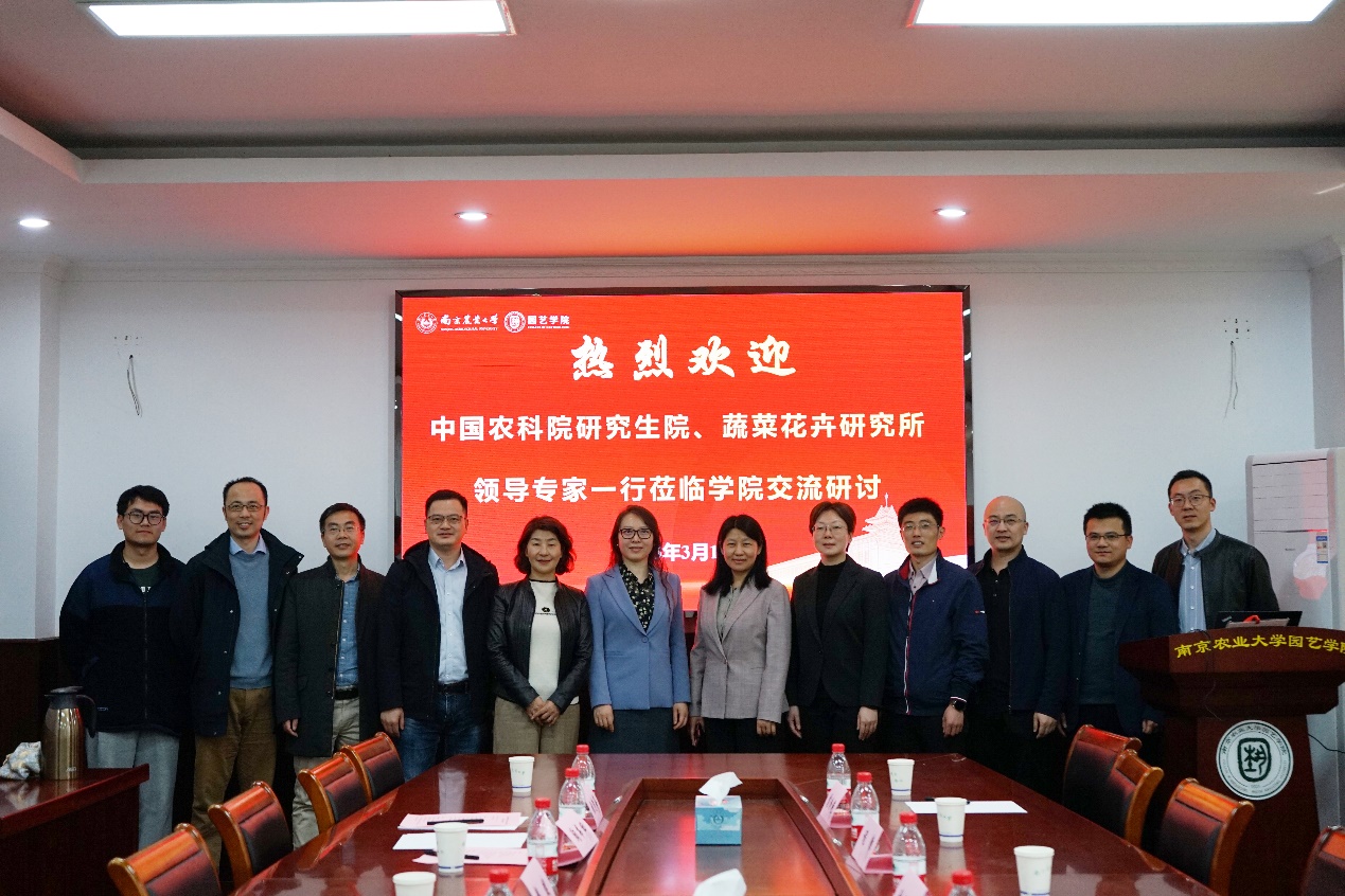 315日,中国农业科学院蔬菜花卉研究所副所长翟研宁一行6来学院考察交流,并就科技攻关、研究生培养及深化合作进行交流座谈。中国农业科学院研究生院招生就业处处长张玉胜、蔬菜花卉研究所生物技术研究室主任程锋、花卉种质资源与遗传育种创新团队首席张秀新、科研处霍伶艳等陪同来访。学院党委书记韩健、院长陈素梅、党委副书记文习成、副院长张清海、陶书田、束胜参加了座谈交流。会议由韩健主持。