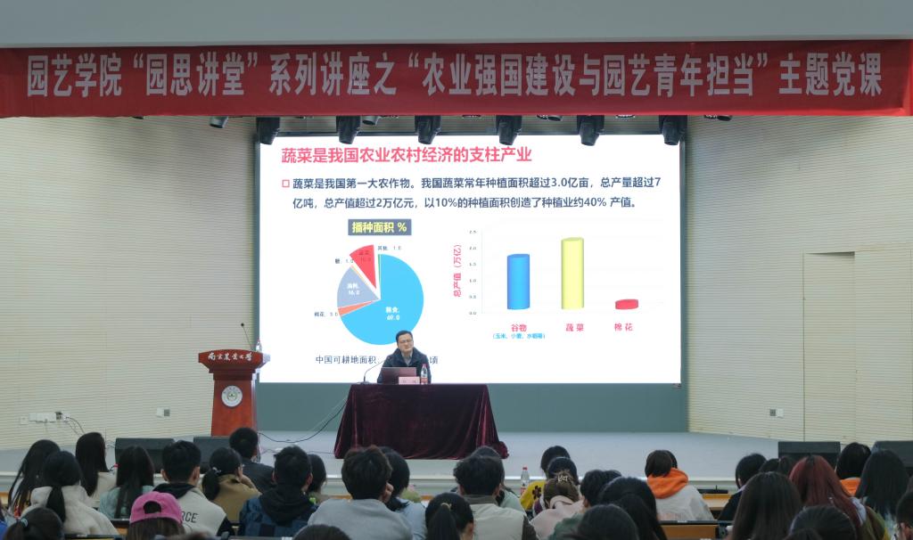 “园思讲堂”系列讲座之“农业强国建设与园艺青年担当”主题党课在大学生活动中心举办。本次党课由国产偷拍