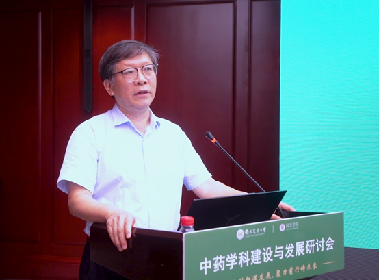 王源超首先代表学校致欢迎辞,他对学院在推动中药学科事业发展以及在学校建设发展中作出的重要贡献给予了充分肯定。他强调,要聚焦国家战略需求,遵循中医药的发展规律,突出中药学科特色,以改革创新为动力,以服务国家和区域经济社会发展为导向,深耕特色,守正创新,以更高的站位和更广的视野谋划中药学科未来发展。他希望各位专家畅所欲言、献计献策、取长补短,协同发展,将中药学科建设越办越好。