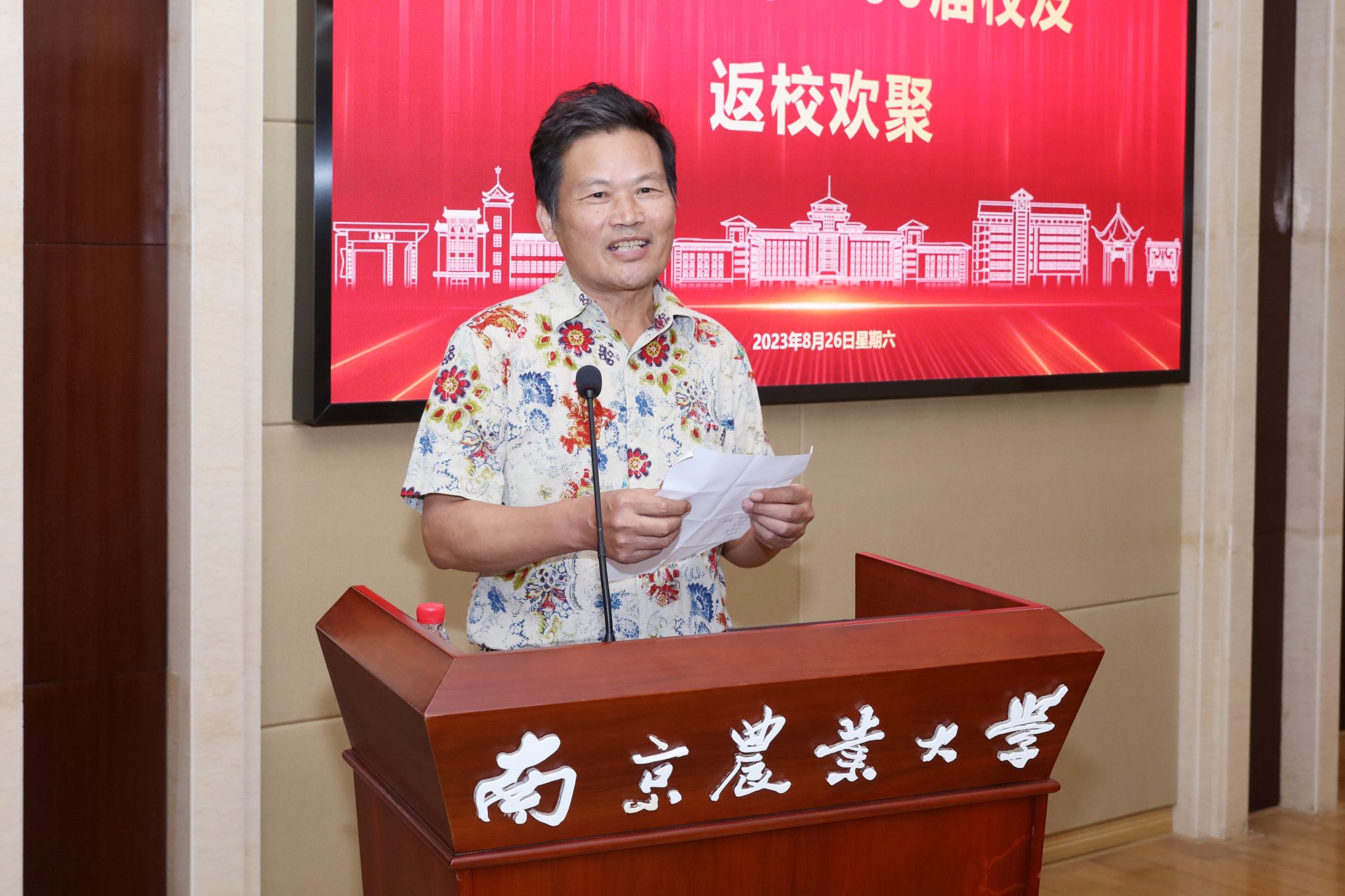 座谈会上,陈发棣在致辞中向校友们介绍了学校在历史沿革、学科建设、科学研究、人才培养、国际合作与交流、服务三农等方面的成就和贡献。他对广大校友长期以来对母校的支持和关心表示感谢,并希望校友们要加强与母校的联系,常回母校看看,为母校发展献言献策,向母校倾诉心声和愿望,共同谱写校友、母校、社会共赢发展的新篇章。