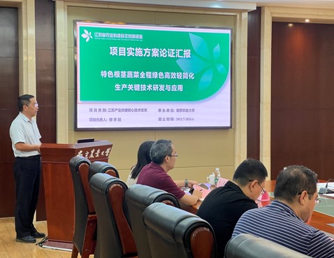 项目管理单位江苏省农科院科研处叶小梅处长对项目成功立项表示祝贺并对实施方案论证提出要求,希望专家组围绕产业需求,从项目研究内容、关键核心技术研发、技术成果示范应用、技术经济指标确定以及项目高效管理等方面提出合理化建议。项目负责人柳李旺教授首先代表项目团队感谢项目主管部门对萝卜与芦笋产业科技发展的关心支持;从产业背景、研究方案、团队分工、考核指标、经费预算等方面对项目实施方案进行了详细汇报。项目聚焦‘泰兴萝卜’、‘涟水芦笋’等特色根茎蔬菜,针对产业发展的关键限制因素,进行优质多抗功能性品种鉴定筛选、全程绿色高效生产技术建立、轻简化生产技术集成、以及贮运保鲜与采后品质保持关键技术研发,以构建特色根茎蔬菜萝卜与芦笋全程绿色高效轻简化生产关键技术体系。项目咨询专家各抒己见,针对该项目的实施方案、关键技术集成和示范推广等方面提出了建设性的指导意见,希望通过项目实施能够全面提升特色根茎蔬菜全程绿色高效轻简化生产关键技术研发与应用,促进特色根茎蔬菜产业高质量可持续发展。