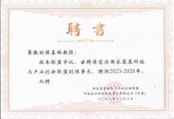 侯喜林教授当选国家蔬菜科技与产业创新联盟副理事长。