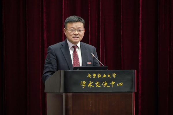 沈其荣院士向新当选的张绍铃院士表示祝贺。他勉励全校科技工作者,学习张绍铃院士持之以恒、坚持不懈的科研精神,扎根中国大地开展科学研究,坚守和聚焦产业技术的科学问题,艰苦奋斗、攻坚克难、迎难而上,为解决国家“三农”问题贡献南农智慧、提出南农方案。