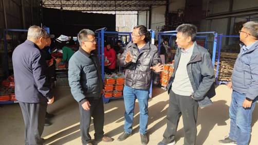 28日,与会领导和专家现场观摩了位于开封市祥符区的宜机化胡萝卜新品种新技术示范推广基地。现场各位专家对40多个胡萝卜新品种(组合)进行了现场考察,这些新品种(组合)综合性状优良,株型直立、叶基盘紧密、肉质根皮色泽好、韧性强。还观摩了胡萝卜全程机械化栽培技术,包括胡萝卜数控定量编绳、北斗导航多功能播种一体机播种、无人机飞防等。在开封弘农氏农业科技有限公司,专家组参观了胡萝卜仓储物流、胡萝卜全自动清洗加工设备、分级包装现场。