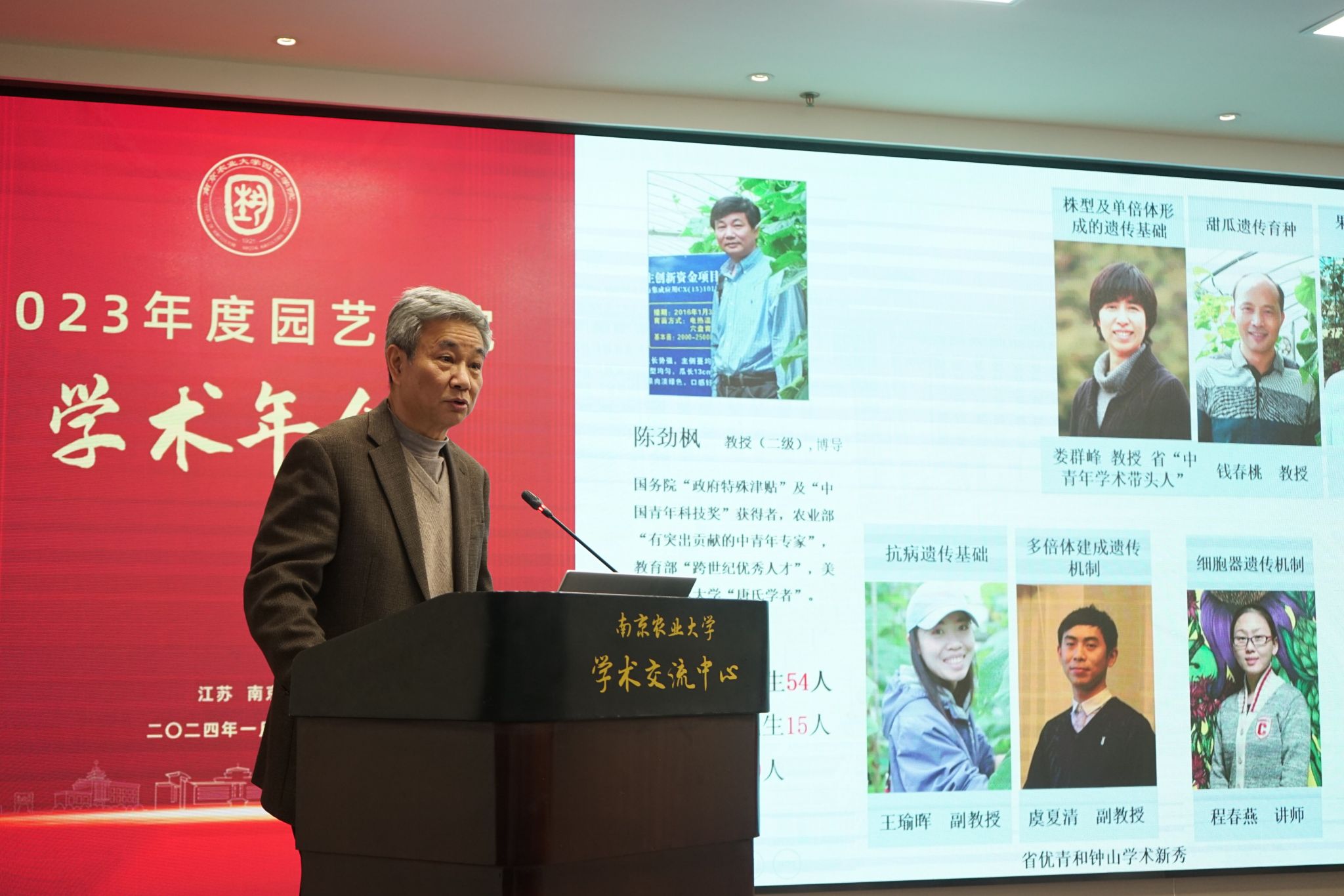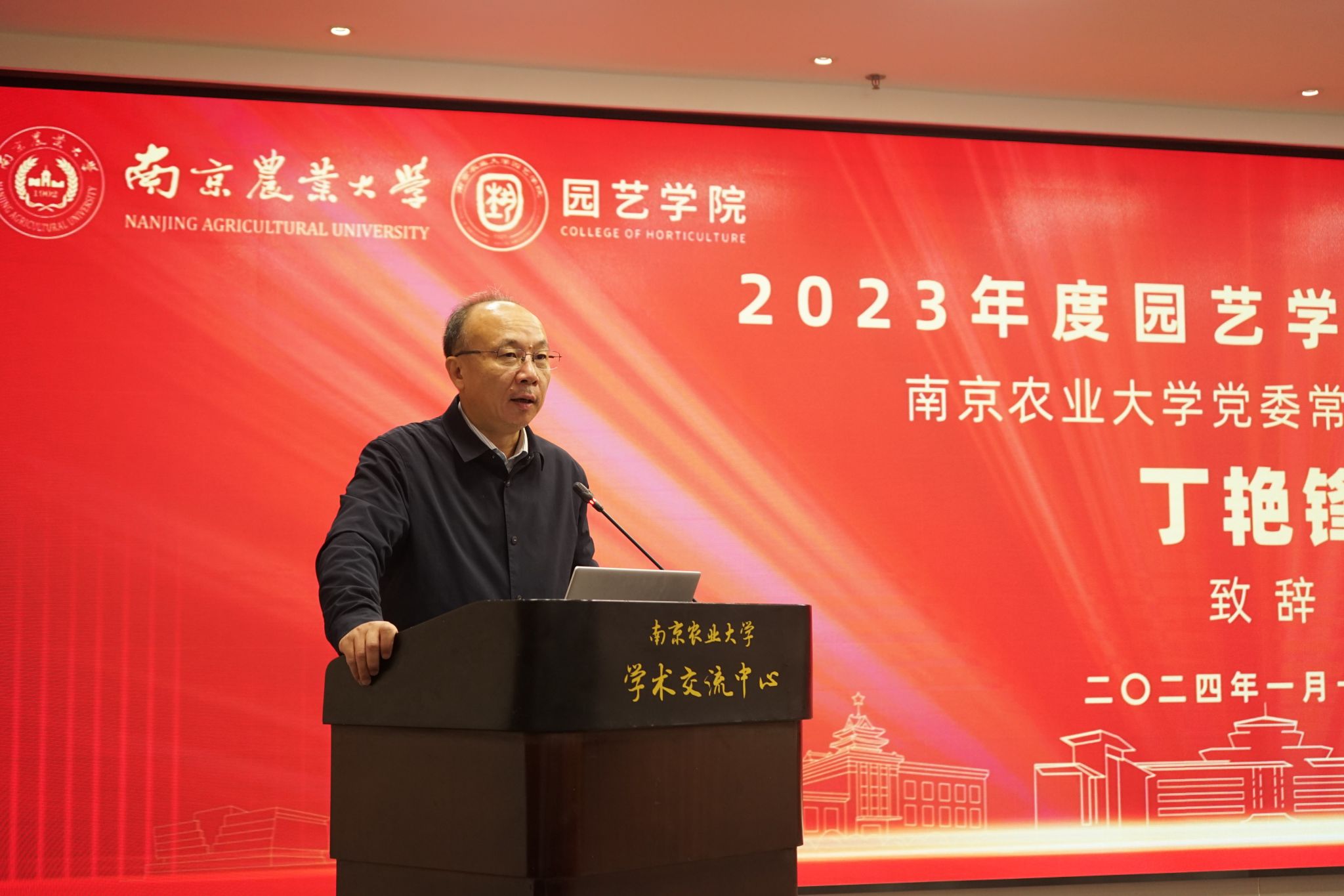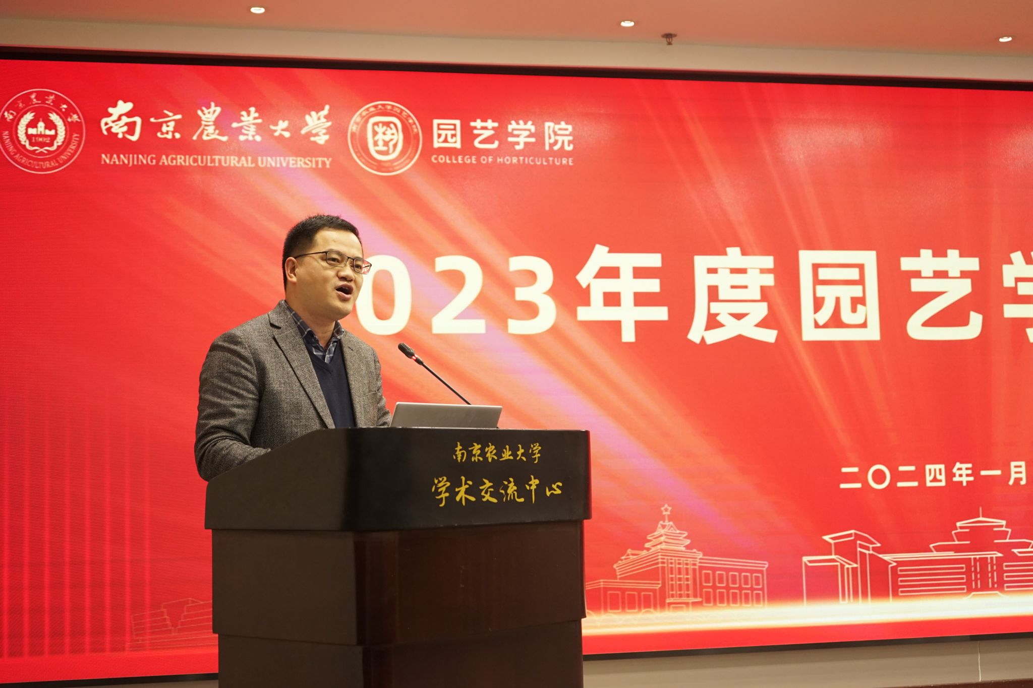 各项工作取得的亮点成绩,并结合工作实际对学院提出了三点建议:一是要聚焦立德树人的根本任务,了解学生所思所想,用适合的方式为学生传授知识;二是要回答好“强国建设,南农何为”的命题,园艺学科要拓展研究方向,瞄准产业需求、瞄准产业的痛点难点堵点,为园艺产业做贡献;三是新时代要用新思维开展各项工作,用二十大的六个坚持指导今后人才培养、科学研究、社会服务和走向世界的国际合作与交流等工作。