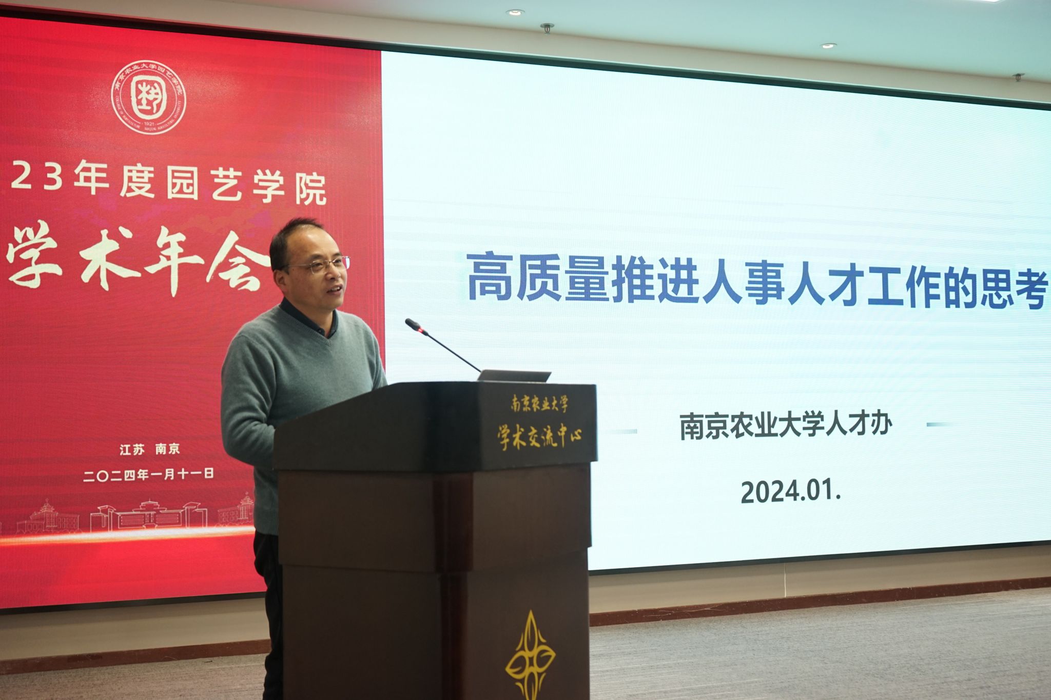 学术交流中心六楼报告厅举行。校党委常委、副校长丁艳锋参加会议并致辞,校人事处处长邹建文、科学研究院副院长葛焱、社会合作处副处长严瑾应邀作专题报告。园艺院领导班子成员、全体教职工以及部分研究生参加会议。会议由园艺学党委书记韩健主持。