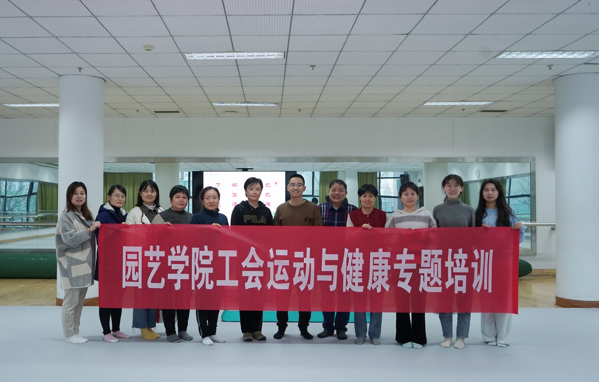 工会在校体育中心瑜伽馆成功举办运动与健康专题培训活动。本次培训邀请了学校体育部雷瑛老师担任主讲嘉宾,旨在提高教职工的健康意识,促进身心健康发展。
