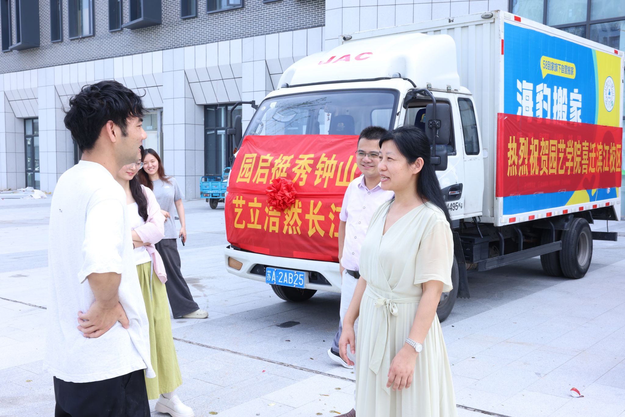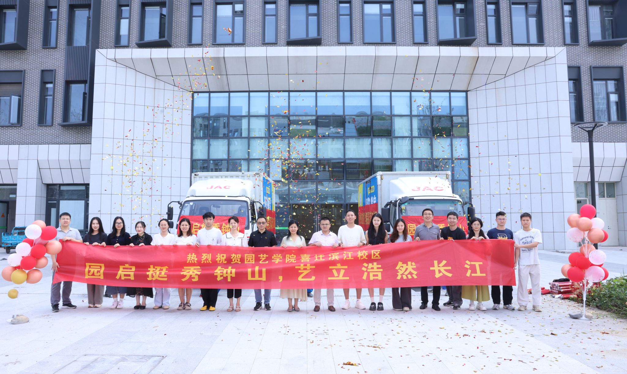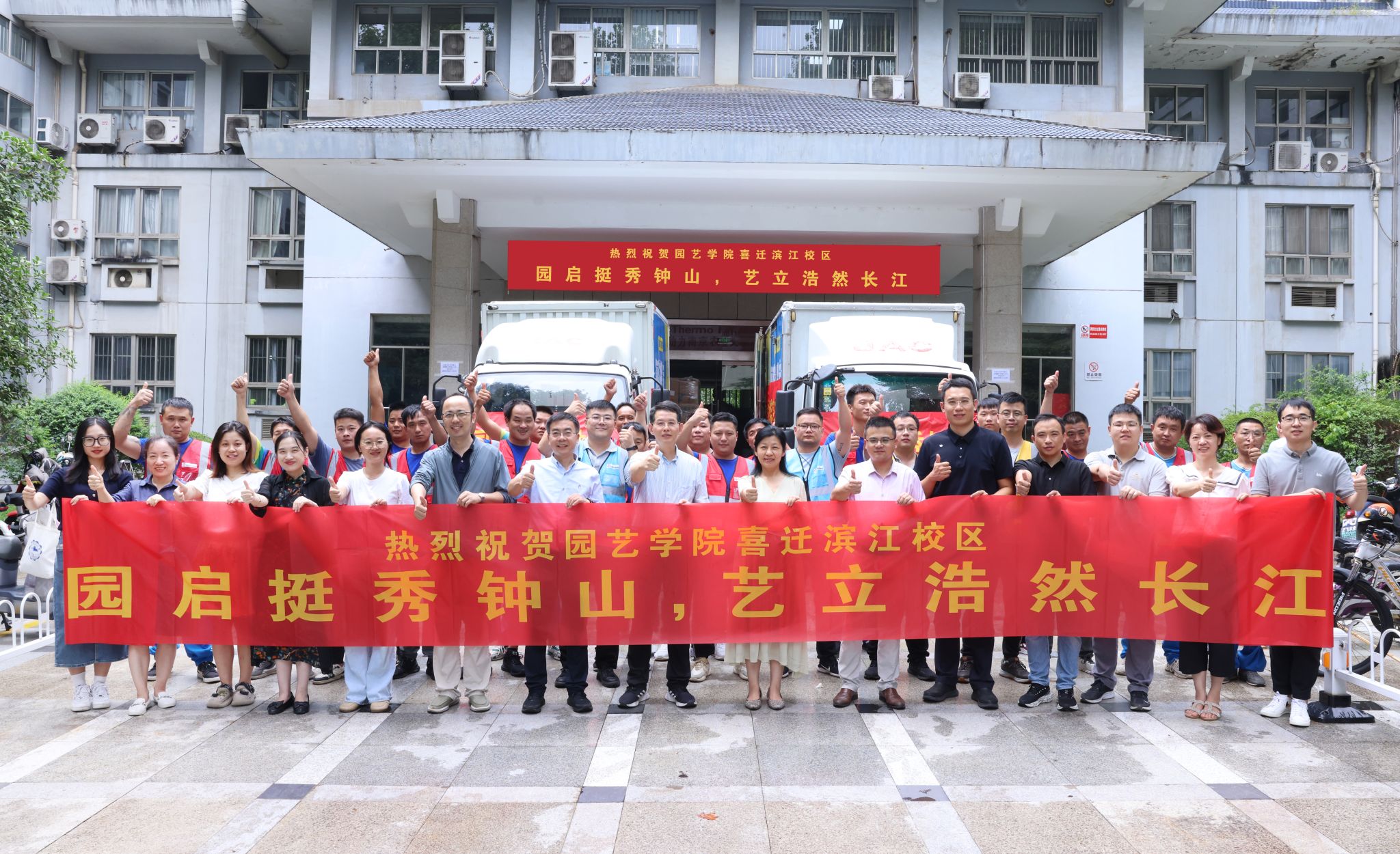 学院党政对搬迁工作高度重视,多次召开协调会与推进会,与全院教职员工一道,周密制定计划表,方案图。整个搬迁工作组织有力,高效有序。首发当日,满载货物的搬迁车辆整装待发。学院以“园启挺秀钟山,艺立浩然长江”续写全体园艺人的卫岗校区美好记忆,开启滨江校区崭新篇章。伴随着人群快欢呼声,整齐划一的车队,满怀喜悦与希望,奔赴滨江校区。
