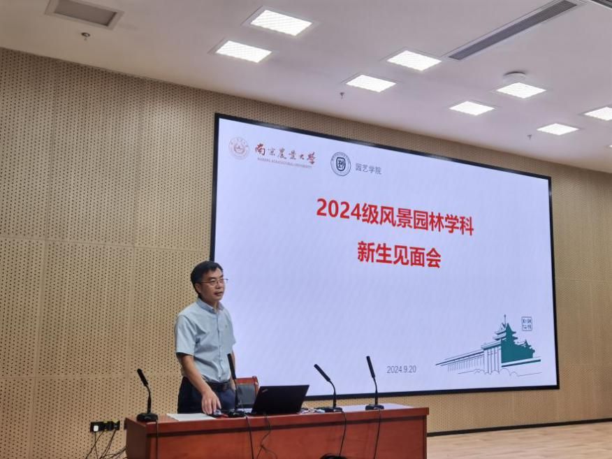 9月20日上午,风景园林学科2024级研究生新生见面会于滨江校区园艺楼142报告厅召开。风景园林专硕点负责人张清海副院长、系主任魏家星教授、导师代表欧维新教授,以及学科点秘书熊星副教授、研究生辅导员鲁月老师和2024级风景园林学科全体研究生参加了此次会议。