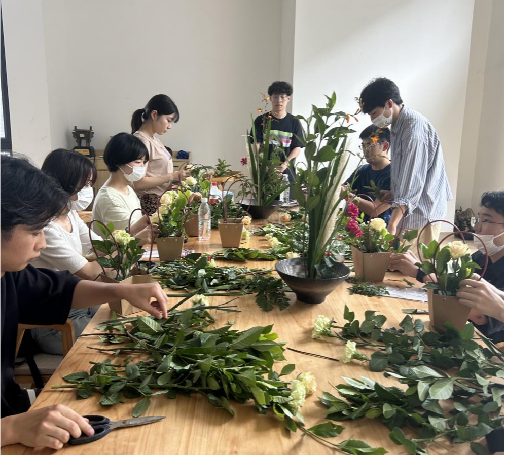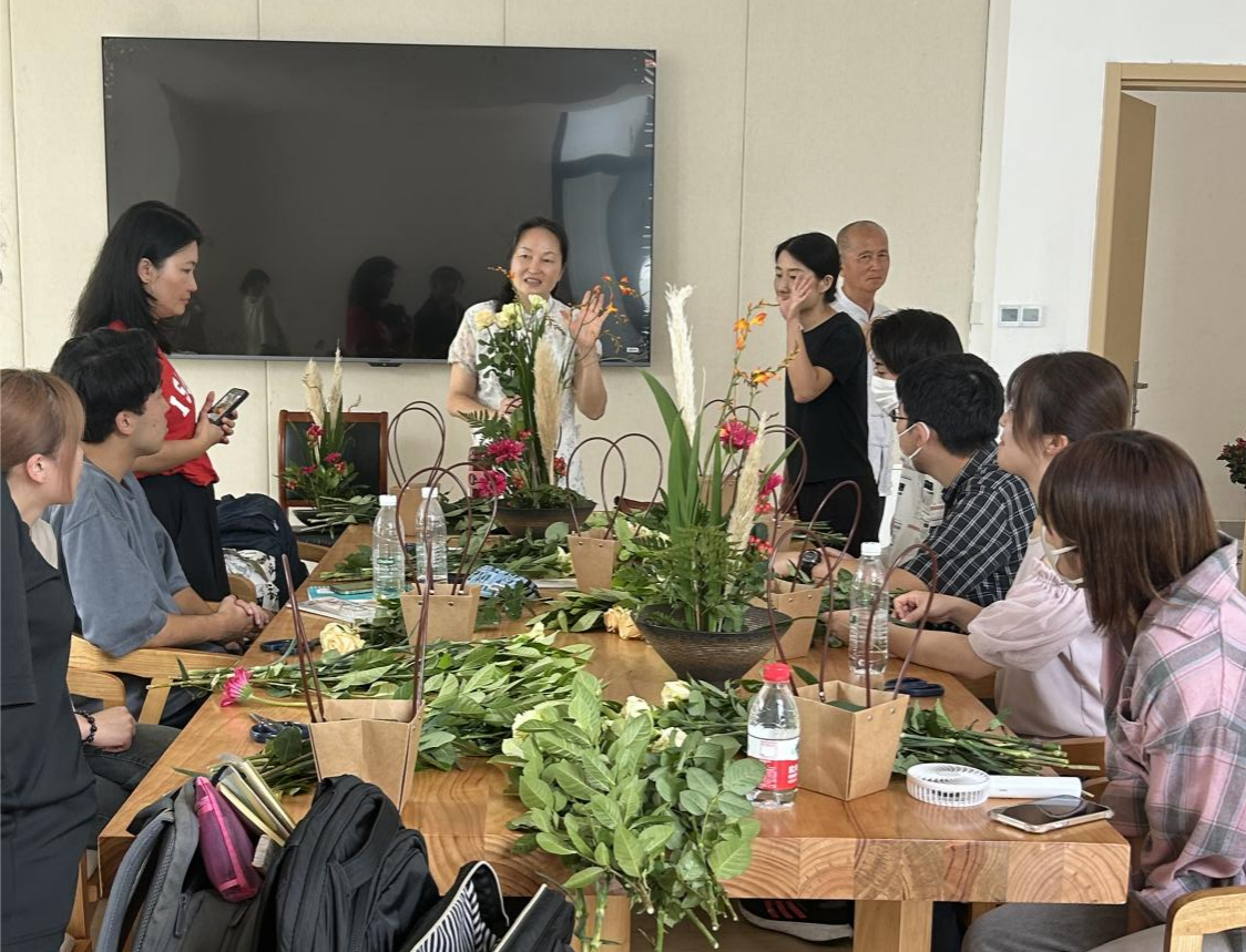 除了学习专业理论知识之余,学院为访学团准备了插花、茶艺等专业实践操作课。江苏省花木协会插花艺术专业委员会会长唐梅英分享插花艺术,并现场进行插花示范教学。访学团在欣赏美丽花卉的同时,学习到插花的基本知识和技巧,激发学生的审美情趣和动手能力。