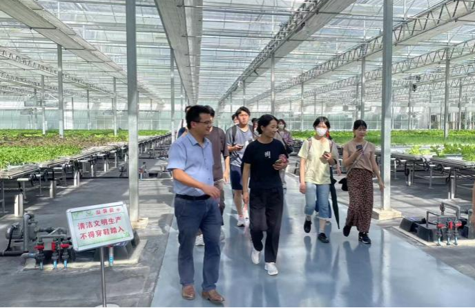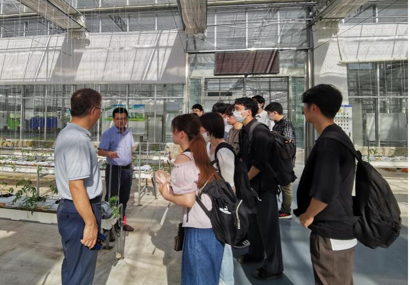 束胜教授带领访学团师生走进设施农业生产基地,了解我国设施蔬菜与无土栽培发展现状、栽培模式以及技术应用等情况,并现场解答学生们的问题。