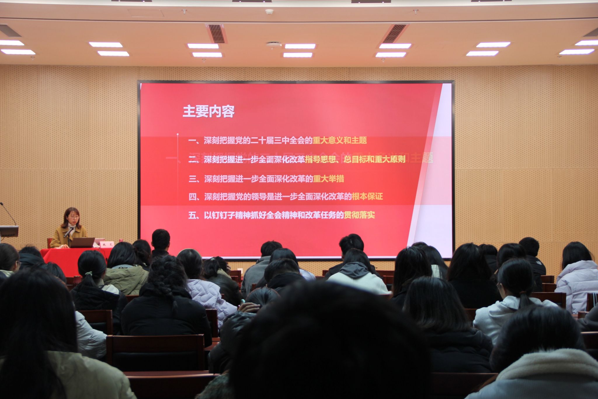 宣讲会上,魏艾老师围绕党的二十届三中全会的重大意义、主要内容和精神实质进行了系统阐述。她强调,党的二十届三中全会是在以中国式现代化全面推进强国建设、民族复兴伟业的关键时期召开的一次十分重要的会议,既是党的十八届三中全会以来全面深化改革的实践续篇,也是新征程推进中国式现代化的时代新篇,具有重大的历史和现实意义。魏艾老师结合国产偷拍