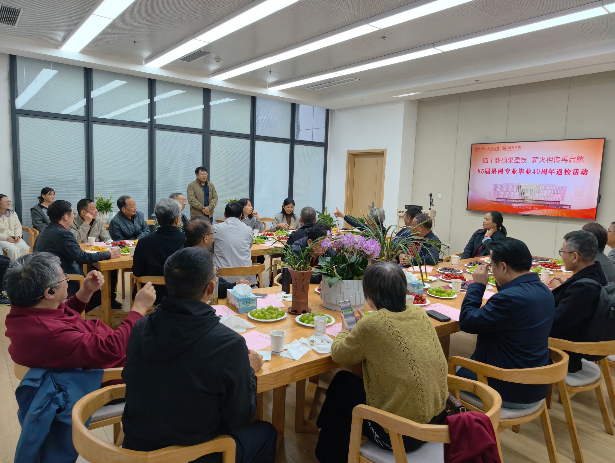 123周年校庆日当天,85届果树专业的校友们返回母校,在学院167活动室举办毕业40周年返校座谈会。座谈会由院党委书记吴彦宁主持。