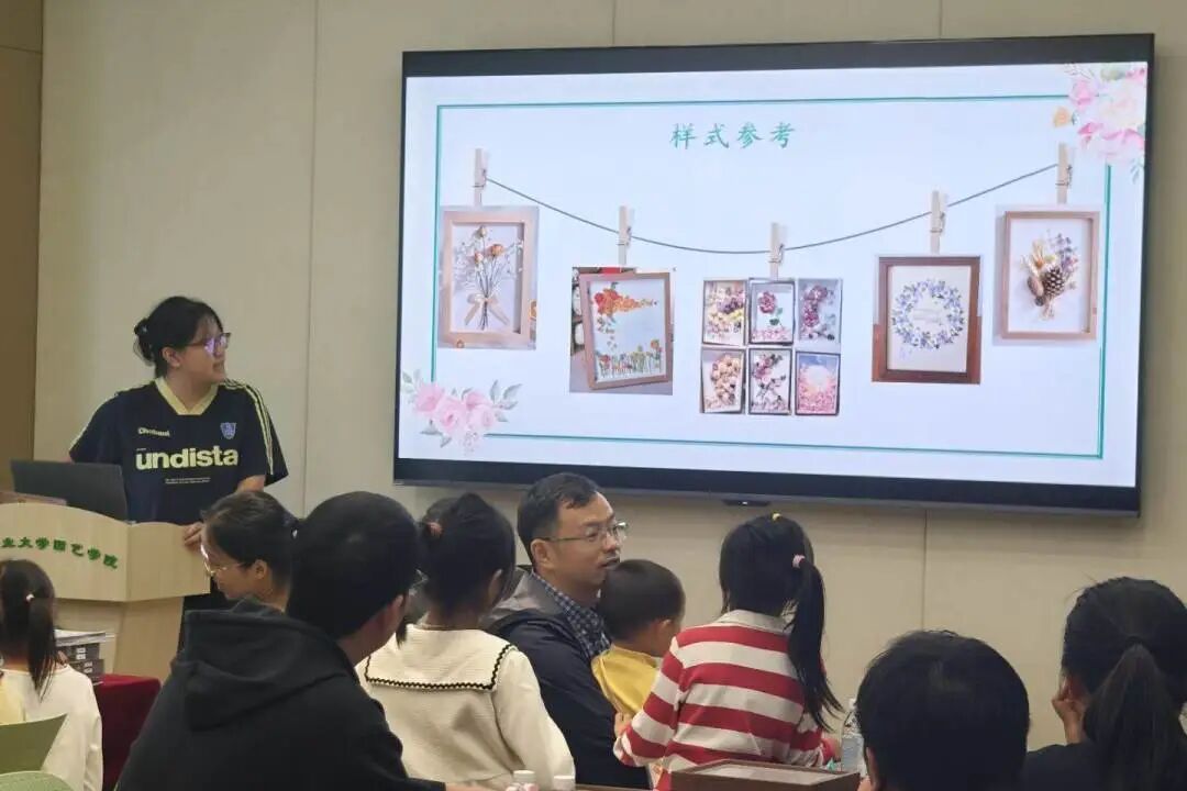 社团联合会、园艺协会、青野手工社承办。旨在为校友家庭打造一场沉浸式的亲子体验。活动伊始,园艺协会的同学带来了一场生动的“自然小课堂”,为大小朋友们讲解了干花的知识与植物背后的故事,在孩子心中播下了探索自然奥秘的种子。