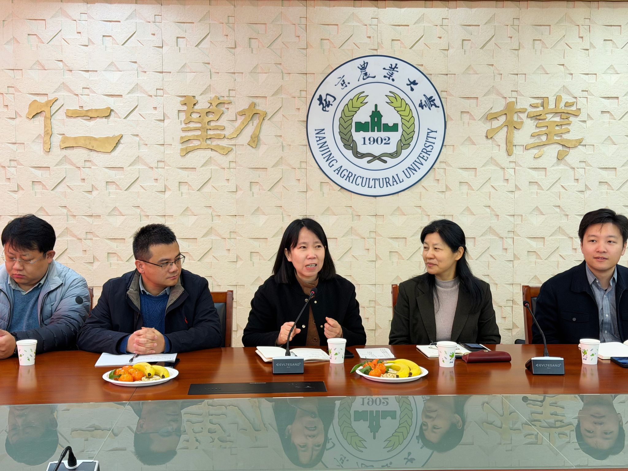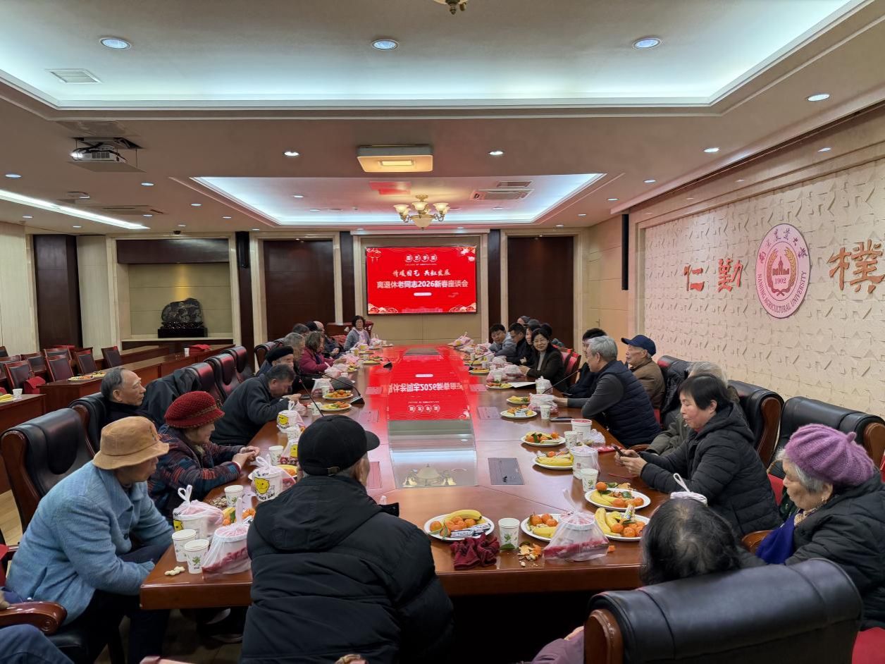 在卫岗校区金陵研究院2楼裕光厅隆重举办2026年离退休教师新春茶话会。学院党委书记吴彦宁、院长陈素梅、院党委副书记束浩渊、副院长王海滨、副院长束胜出席会议,会议由学院党委书记吴彦宁主持。
