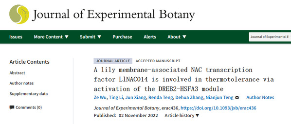 NAC转录因子广泛参与植物的逆境胁迫调控,而其在百合耐热性中的研究鲜有报道。11月2日,国际植物科学领域知名期刊Journal of Experimental Botany在线发表了国产偷拍