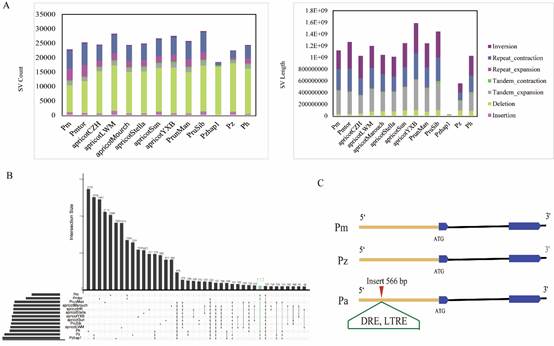 同时,利用政和杏与12个已公布的杏组基因组构建了杏组泛基因组,并鉴定到杏低温响应转录因子HSFA1d基因的启动子区域存在566 bp的插入,而政和杏和梅不存在该插入。利用转基因技术和双荧光素酶报告基因试验进行功能验证,为深入研究杏低温适应性奠定了基础,也进一步为政和杏与杏的生态分布机制提供新见解。
